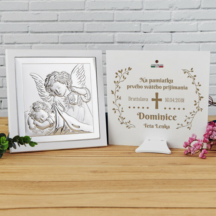 Kríž na prijímanie - Anjel s lampášom - Strieborný obraz s gravírovaním