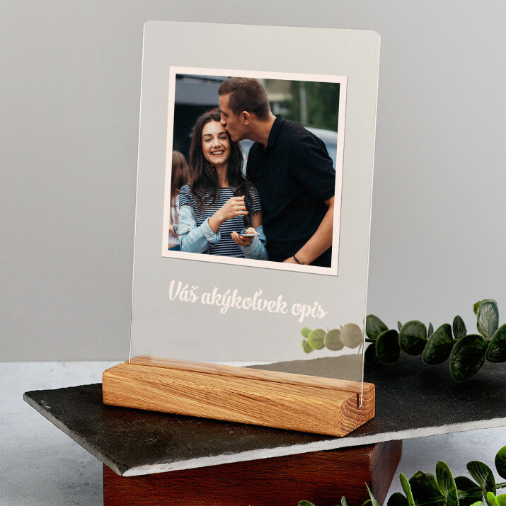 Výnimočná pamiatka, ktorá poteší obdarovaného! Výtlačok na priehľadnom akrylovom skle (plexisklo) s hrúbkou 2 mm je darček, ktorý bude robiť radosť mnoho rokov. Produkt je vyrobený z vysokokvalitných materiálov a je odolný voči poškodeniu alebo poveternostným vplyvom. Vďaka elegantnému drevenému stojanu môžeš výtlačok umiestniť na poličku. Garantujeme, že to bude skvelé prekvapenie pre Tvojich blízkych!Rozmery skla: 21 x 12,5 cm