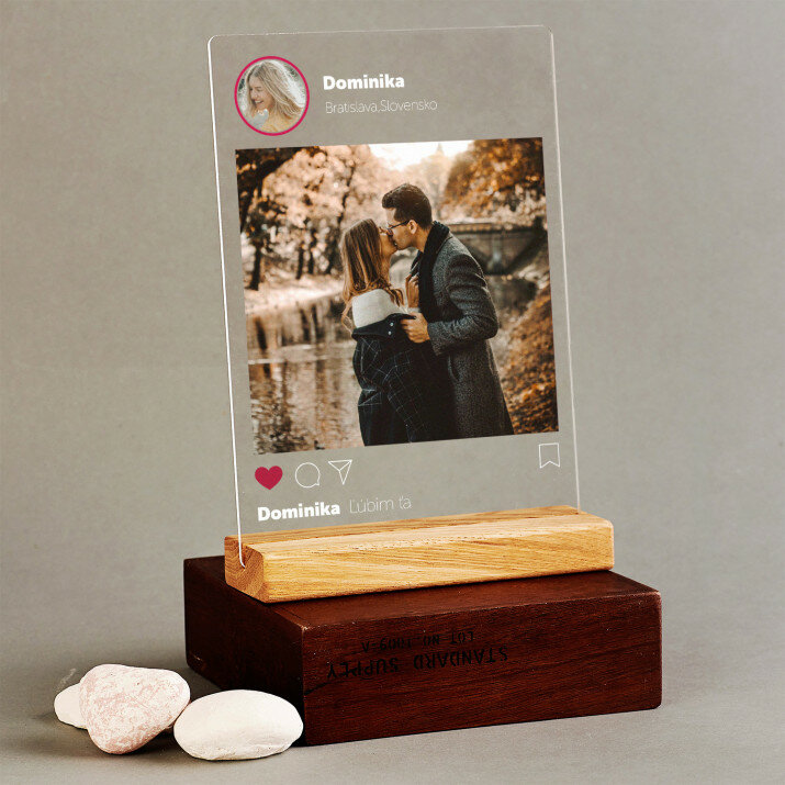 Výnimočná pamiatka, ktorá poteší obdarovaného! Výtlačok na priehľadnom akrylovom skle (plexisklo) s hrúbkou 2 mm je darček, ktorý bude robiť radosť mnoho rokov. Produkt je vyrobený z vysokokvalitných materiálov a je odolný voči poškodeniu alebo poveternostným vplyvom. Vďaka elegantnému drevenému stojanu môžeš výtlačok umiestniť na poličku. Garantujeme, že to bude skvelé prekvapenie pre Tvojich blízkych!Rozmery skla: 21 x 12,5 cm